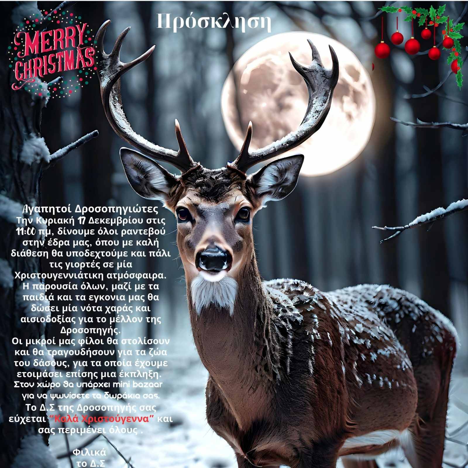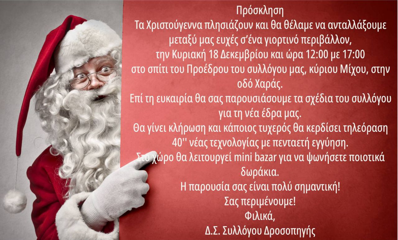 Η γιορτή των Χριστουγέννων που προγραμματιζόταν στην έδρα μας για τις 17/12/23